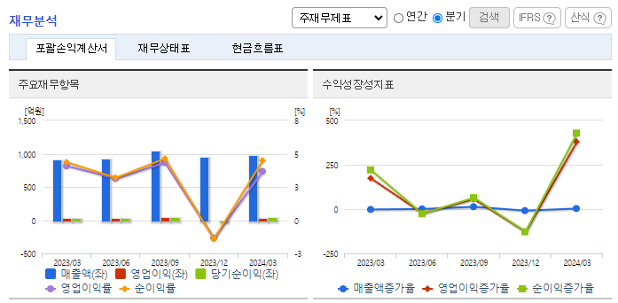 -2024년 3월 전년동기 대비 연결기준 매출액은 7.6% 증가, 영업이익은 3.2% 감소, 당기순이익은 10.9% 증가. 규모가 큰 국내 식품업체들의 잇단 해외 진출로 경쟁이 치열해져 장기적으로 수출 포트폴리오를 재조정해 매출 개선에 나서고 있음. 최근 리오프닝(경제활동 재개)으로 다시 외식을 하는 이들이 늘어나면서 샘표식품의 장류 외 품목의 매출 상승률 하락으로 이어지고 있음.