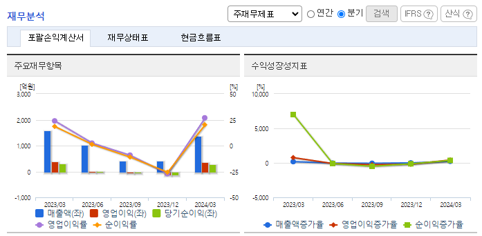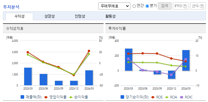 -2024년 3월 전년동기 대비 연결기준 매출액은 14.1% 감소, 영업이익은 3.7% 감소, 당기순이익은 9.6% 감소. 비료판매의 자유화로 경쟁이 더욱 치열해졌음에도 불구하고 M/S 계속 확대되고 있음. 반면, 판가 하락으로 외형은 축소 비용 부담은 확대되며 수익성 하락한 모습. 동사는 경쟁력 강화를 위해 지속적인 원가절감, 친환경 신제품의 개발, 기술혁신과 신시장 개척 등의 공격적인 경영을 지속적으로 추진할 예정임.