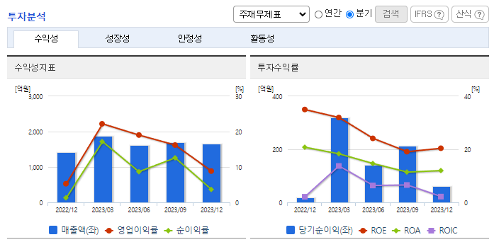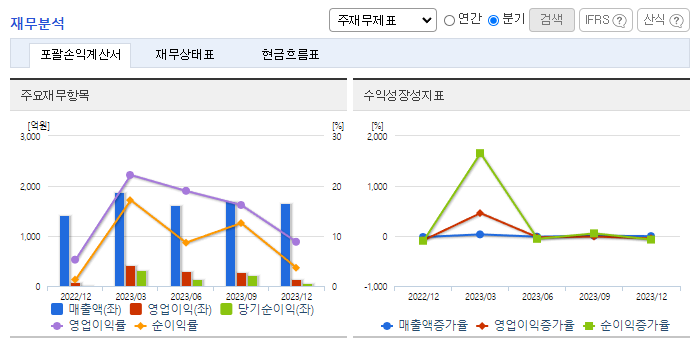 -2023년 12월 전년동기 대비 연결기준 매출액은 10.9% 증가, 영업이익은 23% 감소, 당기순이익은 30.1% 감소. 골프시뮬레이터 구성품인 CPU, 그래픽카드 등의 제조원가가 지속적으로 상승함에 따라 원가율이 악화되어 영업이익 증가율은 역성장을 기록함. 국내 골프시뮬레이터 누적설치대수는 2023년 말 기준 40,958대이며 전년 대비 9.4% 증가함. 동사의 매출은 꾸준히 우상향 중임.