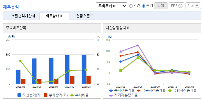 -2024년 3월 전년동기 대비 연결기준 매출액은 32.5% 증가, 영업손실은 85.3% 감소, 당기순손실은 83.7% 감소. 동사의 제품은 안전, 층간소음을 문제를 해결함과 동시에 특허받은 구조 디자인 설계로 다양한 소재와 사이즈의 제품을 출시하여 소비자의 니즈를 충족시키고자 함. 유아가구, 유아스킨케어 등 주요 제품의 수출현황이 회복되었음. 또한, G7커피 및 가전 부문의 매출이 증가했고 매출비중은 당분기말 기준 48% 임.
