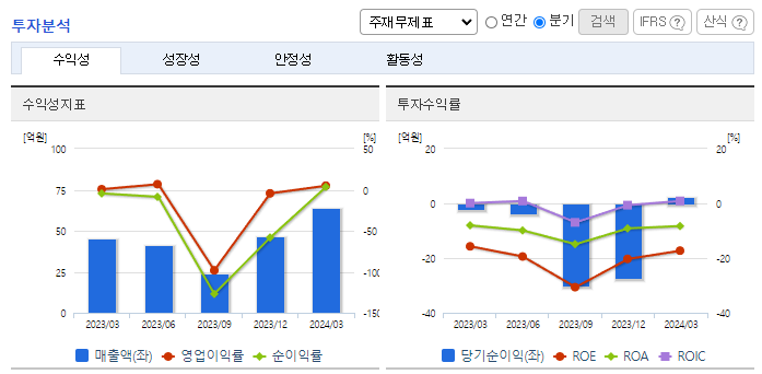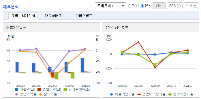 -2024년 3월 전년동기 대비 별도기준 매출액은 41.2% 증가, 영업이익은 919.4% 증가, 당기순이익 흑자전환. 동물유래 조직생체막을 이용한 흡수성 멤브레인(XenoGide)에 대한 국내 허가를 취득하여 2020년도부터 매출로 시현되고 있음. 전문 구강의약품인 미노큐어는 국내 구강의약품 전문회사인 휴온스와 판매 제휴를 맺어 매출증가에 기여하고 있으며, 매출은 매년 성장하고 시장 점유율을 높여가고 있는 상황임.