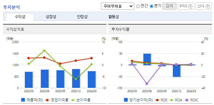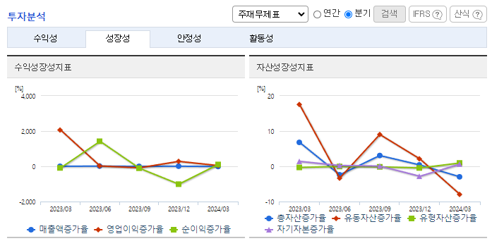 -2024년 3월 전년동기 대비 연결기준 매출액은 2.9% 증가, 영업이익은 2.4% 증가, 당기순이익은 37% 감소. 현재 수출 중인 구 합작관계사인 우즈코람(우즈베키스탄)을 통해 신규사업 추진 및 우즈벡에서 추진 중인 자동차 신규모델 N150, J200, M300에 동사가 참여 중임. 출시한 쉐보레 신형 SUV 트랙스(TRAX) 범퍼에 대한 3년 물량을 확보한 상태로 현재 월평균 1만 대 이상을 공급하고 있음.