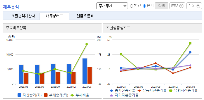 -2024년 3월 전년동기 대비 연결기준 매출액은 48.4% 증가, 영업이익은 547.8% 증가, 당기순이익은 29.6% 증가. 미중무역분쟁의 상대적 수혜로 중국향 수출 매출액이 꾸준히 증가하여 매출 견인함. 2023 년 12 월 초박형 강화유리(UTG) 제조업체 ‘도우인시스’의 지분을 확보하여 자회사로 편입하였으며, 2024년 내에 도우인시스의 IPO를 목표하고 있음.