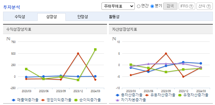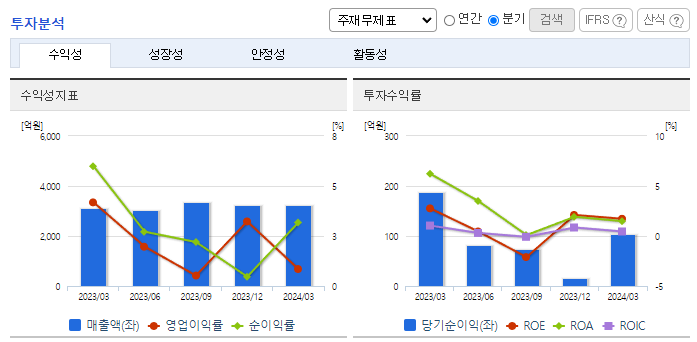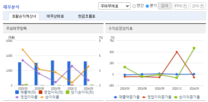 -2024년 3월 전년동기 대비 연결기준 매출액은 3.9% 증가, 영업이익은 78.9% 감소, 당기순이익은 32.4% 감소. 신규 우량 업체 발굴을 통해 국내시장에서의 Market Leader로서의 위치를 강화, 해외 우량 통신 및 네트워크 장비 업체와의 거래 확대 노력에도 동사의 실적이 급감. 대덕전자의 반도체 패키지 수요가 감소하고 HBM 사업 난항을 겪으며 동사의 실적에 부정적으로 작용.