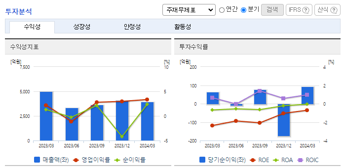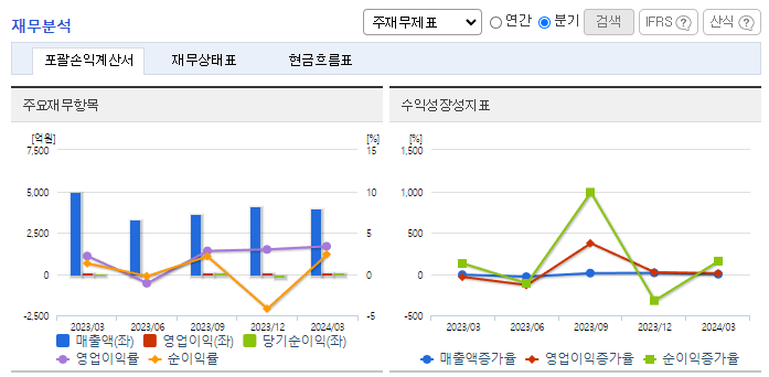 -2024년 3월 전년동기 대비 연결기준 매출액은 20.5% 감소, 영업이익은 22.6% 증가, 당기순이익은 33.4% 증가. 세계 경기의 회복과 중국과 인도 등 신흥경제대국의 지속적인 경제성장에 따른 원자재 가격의 상승추세가 회복될 것으로 전망하고 있음. 복합주유소 개발과 임차주유소 확대, 셀프주유소 전환을 확대 중이며, 저탄소 정책으로 인한 LNG발전 비중 확대로 사업역량 강화중.