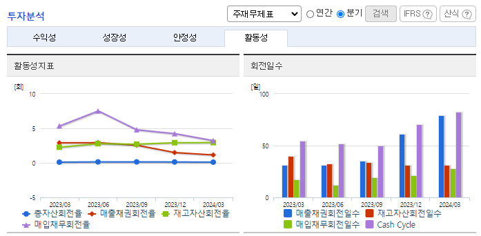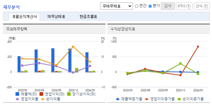 -2024년 3월 전년동기 대비 연결기준 매출액은 24.7% 증가, 영업이익은 16.4% 증가, 당기순이익은 5.2% 감소. 2024년 5월 14일 조달청과 340억 원 규모의 서울 지하철 스마트관제 신호시스템 제작, 구매, 설치 계약을 체결하였음. 계약금액은 최근 매출액 대비 30.23% 임. 동사는 국내 최대 철도 시스템 사업을 수주하면서 수주잔고가 역대 최대를 기록했고, 수주한 사업이 순차적으로 성과를 내며 실적 개선이 예상됨.