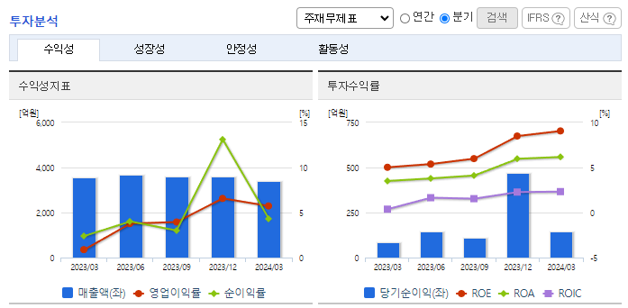 -2024년 3월 전년동기 대비 연결기준 매출액은 4.2% 감소, 영업이익은 520.2% 증가, 당기순이익은 72.3% 증가. 미국 러시아 등 주요 소맥 수출국의 작황 호조 및 러시아-우크라이나 전쟁 여파 완화로 인해 전년대비 원재료비가 하락하여 영업이익 개선에 영향을 줌. 지속적인 생산 효율 및 제고, 연구개발을 통한 제품 경쟁력 확보, 영업 채널의 확대, 탄력적인 영업 전략 운용, 고객 판촉 강화 등 실적 개선을 위해 노력 중.
