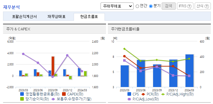 -2024년 3월 전년동기 대비 연결기준 매출액은 45.2% 증가, 영업이익은 111.7% 증가, 당기순이익은 116.5% 증가. 주택분양 등 기타 사업 부문에서 오송바이오 융복합산업지구 아파트 분양사업의 실적에 힘입어 영업실적이 크게 개선됨. 또한 2023년부터 투입된 액화천연가스(LNG) 운반선 2척의 효율적 운영도 실적개선에 기여함. 용선시장의 불확실성과 관련된 위험을 최소화하여 안정적인 영업과 이익 극대화를 위해 노력 중임.