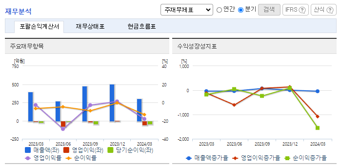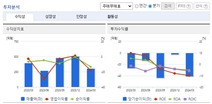 -2024년 3월 전년동기 대비 연결기준 매출액은 22.8% 감소, 영업손실은 390.6% 증가, 당기순손실은 66.2% 증가. 모바일 부문 15.26%, 전장 사업 부문이 46.97% 감소하면서 전체 외형 성장에 악영향을 줌. 향후 동사 및 큐리 바이오와의 연구개발 시너지를 통하여 MEMS 분야의 신사업 발굴을 추진할 계획임. 반도체 장비 관련 부품을 개발 및 제조하는 회사인 덕우세미텍을 전기에 신규 설립함.
