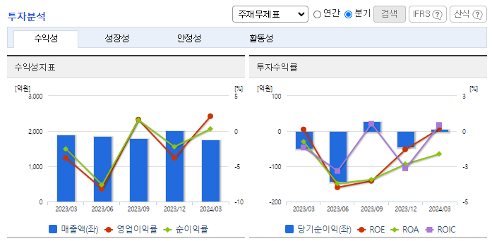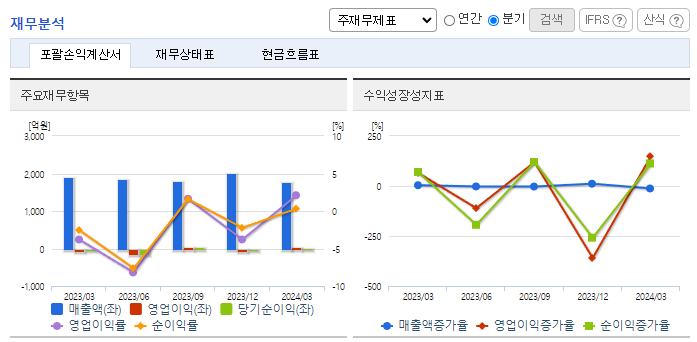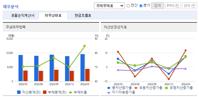 -2024년 3월 전년동기 대비 연결기준 매출액은 7% 감소, 영업이익 흑자전환, 당기순이익 흑자전환. 전기자동차 확대의 트렌드에 맞추어 전기자동차용 2차 전지 원통형 배터리 케이스에 사용되는 니켈도금강판 사업에 진출하기 위해 설비투자 진행 중. 기존사업인 냉간압연사업의 공정과 연관성을 가지고 있어 니켈도금강판 사업 진행 시에 기존 공정의 경험을 바탕으로 설비 운영에 있어 효율성 증대를 도모하고자 함.