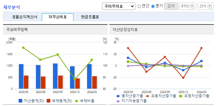 -2024년 3월 전년동기 대비 별도기준 매출액은 11.6% 증가, 영업이익은 41.1% 증가, 당기순이익은 35.8% 증가. 국내 계면활성제 산업은 국내 제조 기술의 개발에 따라 점차 수입품을 대체하여 왔으며, 이로 인한 매출 증가로 영업이익이 증가하였음. 비이온 계면활성제 분야에서는 국내최초로 좁은 에톡실레이션 분포를 가진 비이온 계면활성제 개발에 성공하여 현재까지 국내에서는 유일하게 제품을 공급하고 있음.