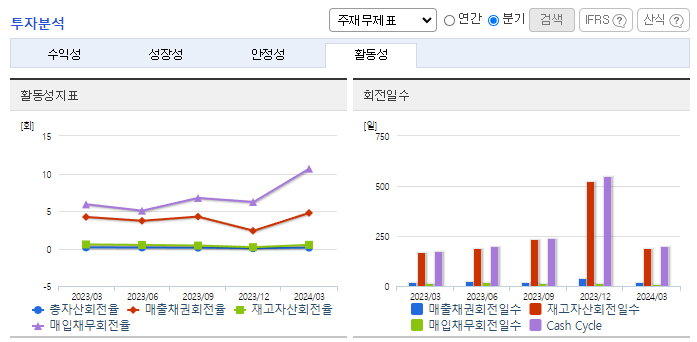 -2024년 3월 전년동기 대비 별도기준 매출액은 22.2% 감소, 영업이익은 5.1% 감소, 당기순이익은 60% 감소. 솔브레인(주)와 최대주주 변경을 수반하는 주식양수도계약이 완료되어 종속기업인 (주)켐옵틱스 및 (주)디엔에프 신소재의 매각을 완료하여 중단영업손실이 반영됨. 지속적인 연구개발을 통해 LT(Low-temp) SiN 재료 개발을 성공하였고, 현재 양산에 사용되는 장비와 최적화 작업을 진행하고 있음.