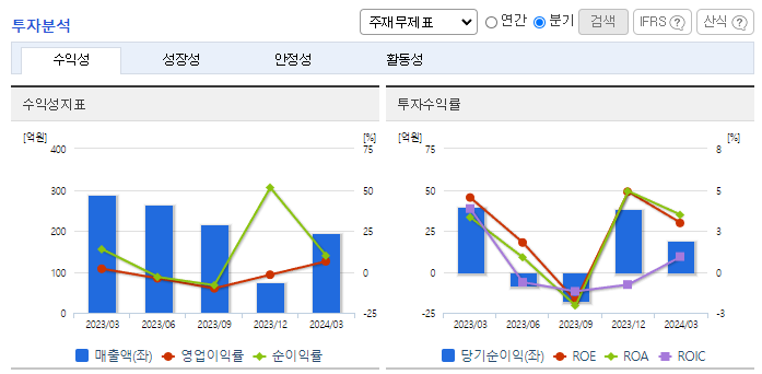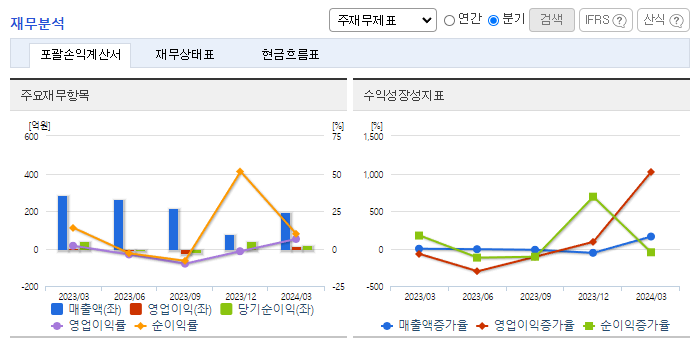 -2024년 3월 전년동기 대비 별도기준 매출액은 22.2% 감소, 영업이익은 5.1% 감소, 당기순이익은 60% 감소. 솔브레인(주)와 최대주주 변경을 수반하는 주식양수도계약이 완료되어 종속기업인 (주)켐옵틱스 및 (주)디엔에프 신소재의 매각을 완료하여 중단영업손실이 반영됨. 지속적인 연구개발을 통해 LT(Low-temp) SiN 재료 개발을 성공하였고, 현재 양산에 사용되는 장비와 최적화 작업을 진행하고 있음.