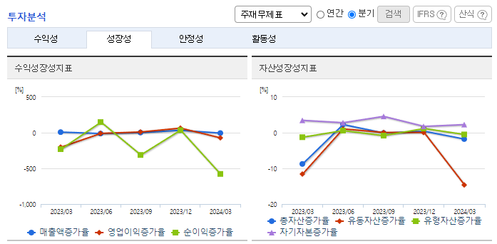 -2023년 12월 전년동기 대비 연결기준 매출액은 12.7% 증가, 영업손실은 145.2% 증가, 당기순손실은 419.6% 증가. 적극적인 영업활동으로 액츄에이터의 국내판로 및 수출이 확대되어 매출이 증가. 그러나 자율주행로봇사업 연구개발비 증가 등으로 인해 판관비가 커지며 영업적자폭이 확대. LG전자의 경우는 서비스 로봇분야 공동 사업화를 위해 본사의 지분투자를 하였고 협업을 위한 다양한 분야의 검토도 진행 중.