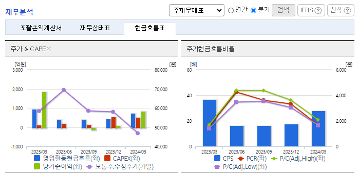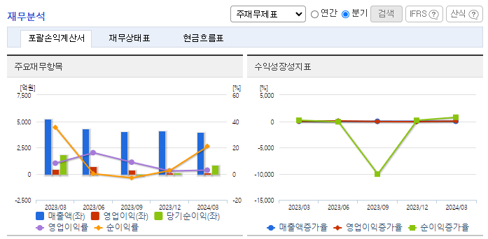 -2024년 3월 전년동기 대비 연결기준 매출액은 23.9% 감소, 영업이익은 74.4% 감소, 당기순이익은 55% 감소. 케미컬사업부문의 가성소다, ECH, 암모니아 등의 국제가격이 하락세를 보이며 다소 부진한 수준의 외형을 시현함. 원가율 또한 상승하여 수익성 또한 크게 하락한 상황. 메셀로스, 헤셀로스는 신규용도 개발과 시장 개척, 지속적인 신규 Grade개발 등을 통해 글로벌 경쟁력을 더욱 강화하고 있음.