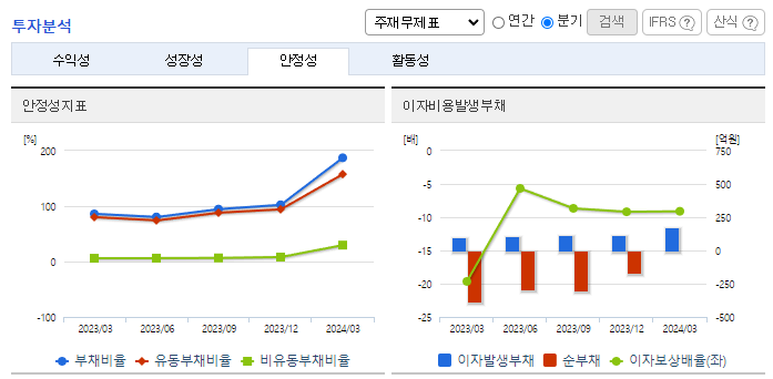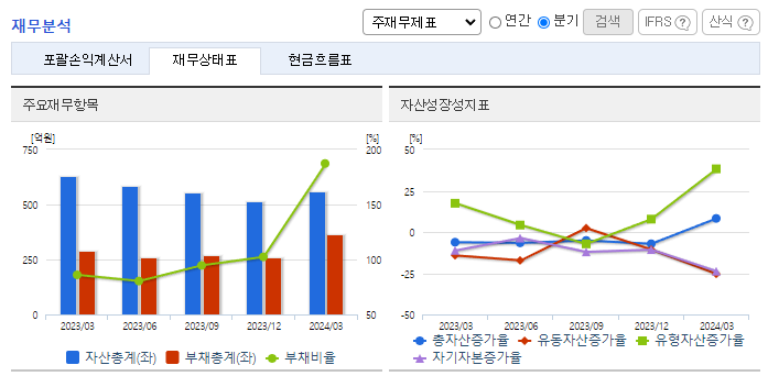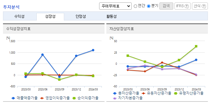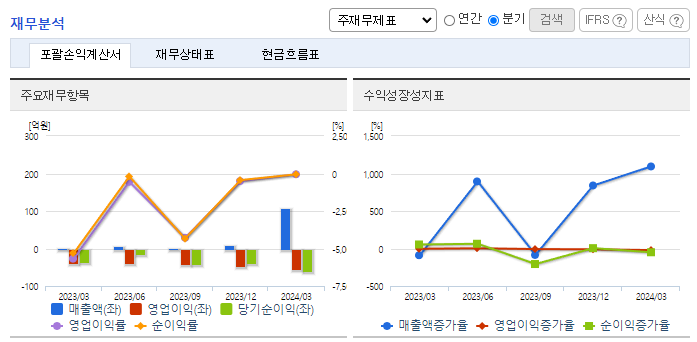 -2024년 3월 전년동기 대비 연결기준 매출액은 15375.7% 증가, 영업손실은 40.8% 증가, 당기순손실은 62% 증가. 2023년 12월 스마트팩토리 컨설팅과 MES 구축 등을 주된 사업으로 영위하는 아이엘포유의 경영권을 인수하는 계약을 체결하였음. 당기부터 종속회사인 아이엘포유의 실적이 매출에 포함되었으나, 아이엘포유 인수에 따른 비용의 증가로 영업손실폭은 확대됨.
