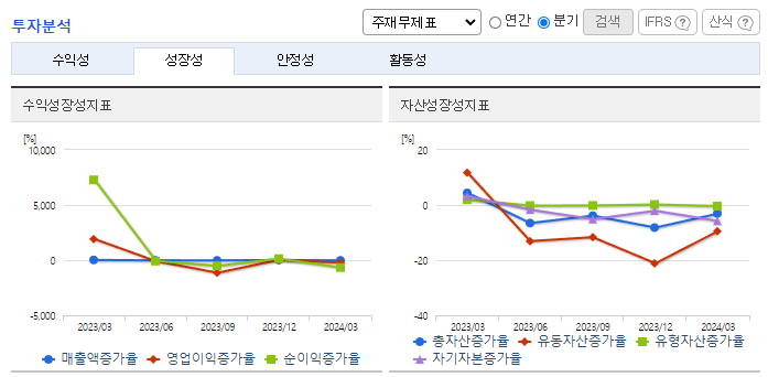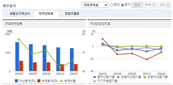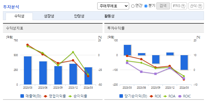 -2024년 3월 전년동기 대비 연결기준 매출액은 38.4% 감소, 영업이익 적자전환, 당기순이익 적자전환. 부문별 매출액 중 바이오매출액 66%, 분석센터매출액 96% 전분기 대비 감소함에 따라 매출액이 크게 감소하였음. 바이오의약품 송도공장은 상용화 준비 및 대내외적 바이오산업의 경기 침체 등의 사유로 국내외 고객과의 CDMO(항체 바이오의약품 위탁생산. 개발) 수주 계약이 감소하여 전체 매출이 감소하였음.