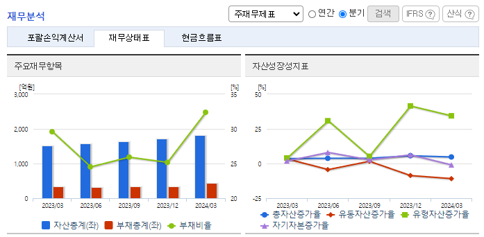 -2024년 3월 전년동기 대비 연결기준 매출액은 22.5% 감소, 영업이익은 56.2% 감소, 당기순이익은 62.8% 감소. 생체재료 개질 및 기반 기술과 HA응용기술을 활용하여 시장의 니즈를 충족할 수 있는 제품군을 개발하고 있으며, 생체유방, 차세대 비만/당뇨치료제, 항바이러스 치료제 등의 개발에 집중함. 2021년 말 식약처 품목 허가를 득하여 시장에 출시한 방광용 조직 수복재는 단기간 동안 시장 침투율 및 점유율을 높여 나감.