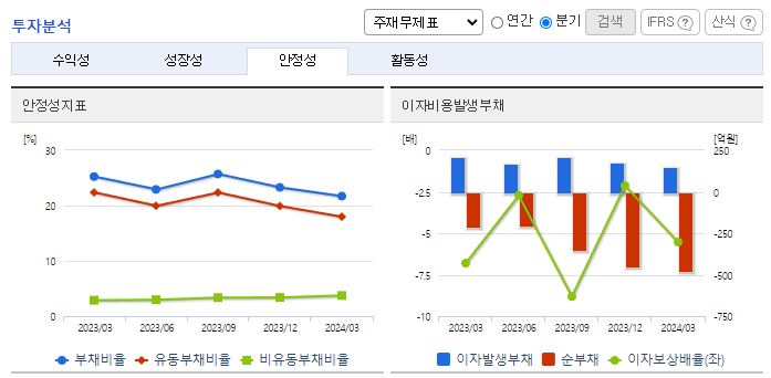 -2024년 3월 전년동기 대비 연결기준 매출액은 21.1% 감소, 영업손실은 70.6% 증가, 당기순이익 흑자전환. 원자재가격 상승과 수급 불안 및 전력료, 스팀료 등 에너지 가격 상승으로 인하여 매출원가율이 증가함에 따라 영업손실이 증가함. 환율 급등에 따라 보유한 달러채권 및 달러예금 등의 미달러 금융자산 평가이익 증가 등으로 인하여 당기순이익은 흑자전환함.
