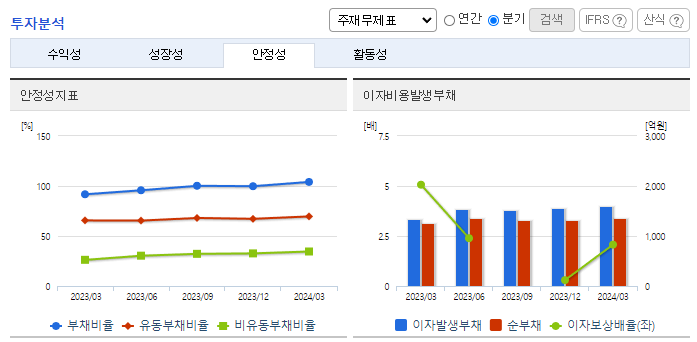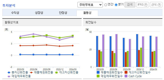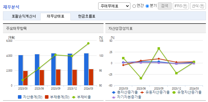 -2024년 3월 전년동기 대비 연결기준 매출액은 5.3% 감소, 영업이익은 65.9% 감소, 당기순이익은 82.7% 감소. 지난해 대비 가성소다 등의 판가가 하락함에 따라 매출 감소된 상황이며, 상대적인 원가율 상승 및 비용 증가 등으로 수익성은 다소 큰 폭으로 하락함. 반도체 및 디스플레이 시장이 지속 성장하고 있어 전망은 긍정적임. 활용 분야가 계속 확대될 것으로 예상돼 실적 개선 가능할 것으로 기대.