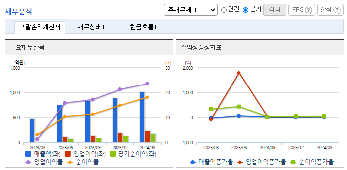 -2024년 3월 전년동기 대비 연결기준 매출액은 112.6% 증가, 영업이익은 3,777.8% 증가, 당기순이익은 1,540.1% 증가. 2024년 한국 시장은 올리브영과 다이소를 중심으로 성장이 지속될 것이며, 국가별 매출 다변화가 이루어지는 원년이 될 것으로 예상됨. 미국 시장은 작년 11월 아마존 US 브랜드관 오픈 후 리들샷을 중심으로 매출 발생이 시작됐으며, 중국시장은 리들샷 위생 허가를 진행하고 있음.