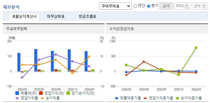 -2024년 3월 전년동기 대비 연결기준 매출액은 10.8% 증가, 영업이익 흑자전환, 당기순이익은 155.6% 증가. 동사 판매 전략은 시장 현지화를 통한 각 지역별 네트워크를 구축하는 것임. 최근 주요 영업 거점인 중국, 독일, 미국에 해외지사를 설치하였고, 추후 일본, 인도 등으로 확장 예정. 제반 전방시장의 실적은 소폭 상승하였으며 슈퍼커패시터의 제품인지도 제고로 신규 어플리케이션의 진출을 지속적으로 확대될 것으로 전망됨.