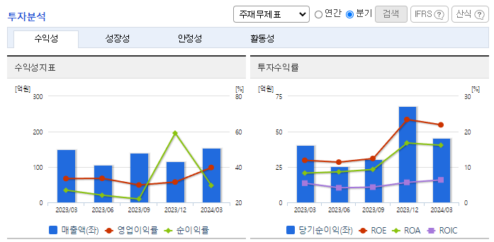-2024년 3월 전년동기 대비 연결기준 매출액은 2.4% 증가, 영업이익은 21.6% 증가, 당기순이익은 12.9% 증가. 판관비가 7.2% 감소하면서, 매출액 감소에도 영업이익이 증가함. 판관비 중 급여 항목이 48.03% 감소하면서 영업이익에 긍정적인 영향을 줌. 2022년 전자서명 사업역량을 강화하고 자원의 효율적인 관리를 위하여 종속회사였던 글로싸인을 흡수합병 하면서 외형을 키우는 데 집중함.