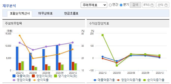 -2023년 12월 전년동기 대비 연결기준 매출액은 23.1% 증가, 영업이익은 13.2% 증가, 당기순이익은 7.5% 증가. 최대 규모의 생산설비를 통해 바이오의약품을 위탁생산하는 CMO 사업이 꾸준히 성장하고 있으며 이에 따라 매출이 크게 상승하고 있음. 2023년 6월, 4 공장 24만 리터 전체 가동에 성공하며 현재 총 60.4만 리터 생산설비를 가동 중이며 글로벌 최대 규모의 생산 리더십을 지속 유지해 나갈 전망임.