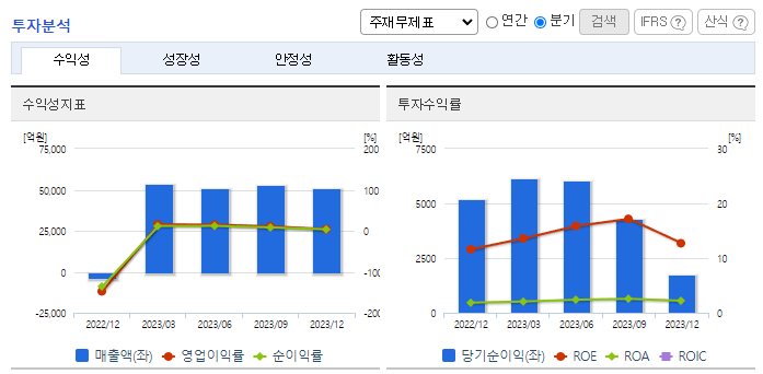 -2023년 12월 전년동기 대비 연결기준 매출액은 6.2% 증가, 영업이익은 15.3% 증가, 당기순이익은 12% 증가. 계절적 예실차 감소와 가정변경으로 인한 손실비용 확대로 보험손익 부진. 고수익 상품 매출확대로 신계약 CSM 개선추세. 전반적인 효율성지표는 양호하며, CSM 증가를 바탕으로 보험손익 개선추세 유지 예상. 업종 내 가장 높은 자본력을 보유하여 주주환원 확대 관련 기대감 지속됨.