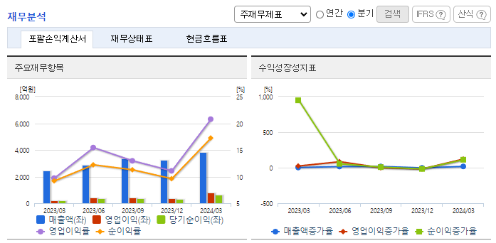 -2024년 3월 전년동기 대비 연결기준 매출액은 57.1% 증가, 영업이익은 235.8% 증가, 당기순이익은 197.9% 증가. 삼양라면, 불닭볶음면 등 인기제품 판매 기반 및 지난해 판가인상 효과, 적극적인 영업활동을 통한 해외 매출이 전년동기 대비 16.1% 증가함에 따라 매출 및 수익성 크게 증가함. 수출을 가속화할 수 있는 신규 생산기지로 밀양 제2공장을 증설함.