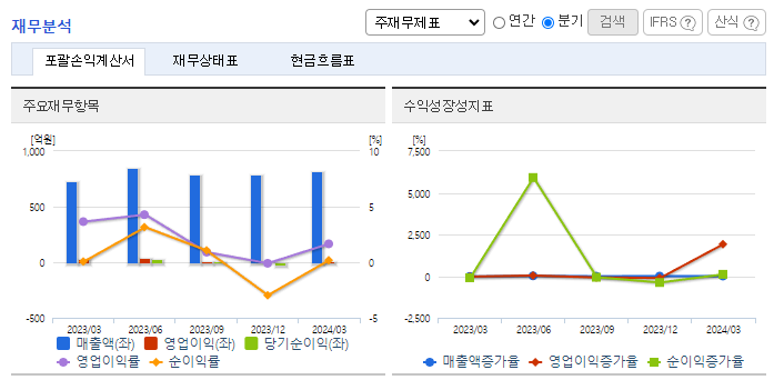 -2024년 1분기 연결기준 매출액은 전년동기 대비 13.2% 증가, 영업이익은 48.7% 감소, 당기순이익은 220% 증가. 메카트로 시스템의 수출이 308.4% 증가함에 따라 전체 매출은 증가하였으나 영업비용의 증가로 영업이익 감소함. 자동화부품 시장을 선점하기 위해 제품 개발을 꾸준히 진행하고 있으며 이러한 노력으로 LM가이드제품 시장에서 당사는 대략 50% 정도의 점유율을 보이고 있음.