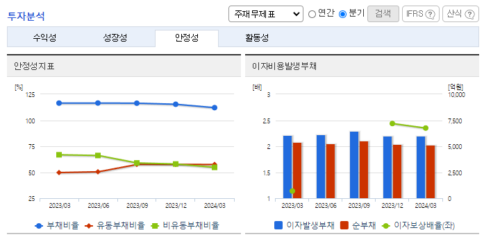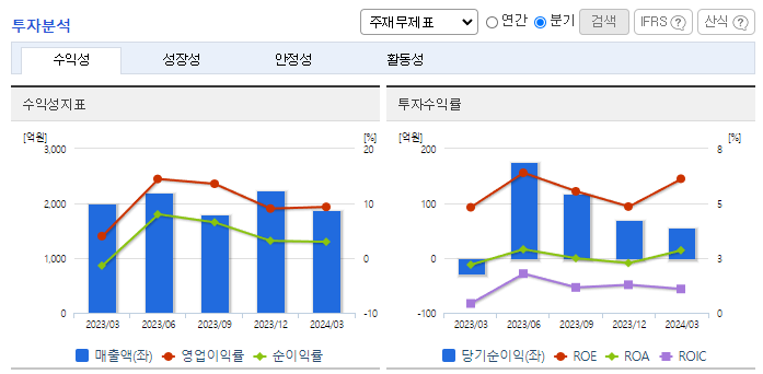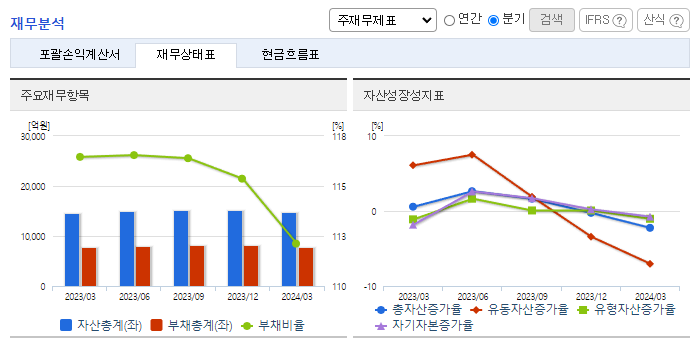 -2024년 3월 전년동기 대비 연결기준 매출액은 5.3% 감소, 영업이익은 120.7% 증가, 당기순이익 흑자전환. 공사비 증가로 인한 건설 경기 부진의 본격화로 인해 시멘트 매출 감소. 다만 시멘트 판매 단가가 상승하면서 영업이익은 크게 성장. 연간 60억 예산의 시멘트 전용선의 취역으로, 하역 작업시간 절반 감소 및 부두 혼잡 문제, 일기 변수 문제 대응력 상향.