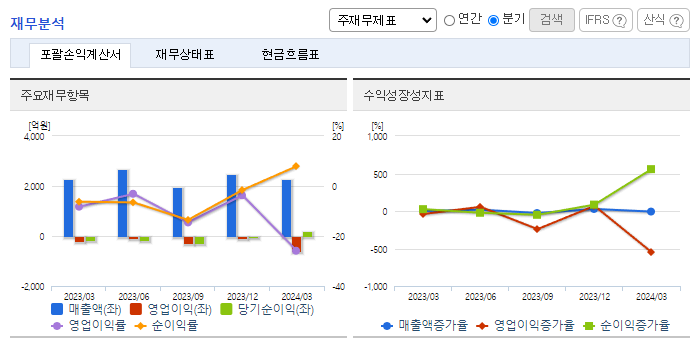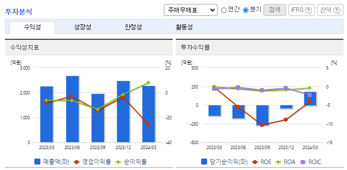 -2024년 3월 전년동기 대비 연결기준 매출액은 0.7% 증가, 영업손실은 215% 증가, 당기순이익 흑자전환. 동사의 1분기 영업실적은 영업손실이 대폭 증가하였는데, 주요 원인으로는 부동산시장 침체에 따른 대손충당금 증가 등의 원인이 있음. 최근 가계신용대출, 부동산 관련 대출을 중심으로 연체율이 크게 상승하고 있고, 대손충당금 적립에 지속적으로 노력하고 있음.
