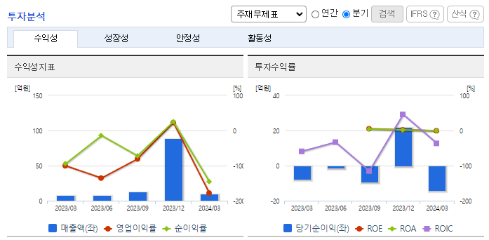 -2024년 3월 전년동기 대비 별도기준 매출액은 22.1% 증가, 영업손실은 116.7% 증가, 당기순손실은 88% 증가. CTX 매출액 증가하였으나, 판매관리비 등의 비용 확대로 수익성이 악화됨. 최근에는 생성형 AI 기술(예: LLM)을 사용하여 사이버 위협 정보를 자연어로 서비스하는 핵심 기술 연구에 주력하고 있으며, CTX for GPT를 GPT 스토어에 출시함.
