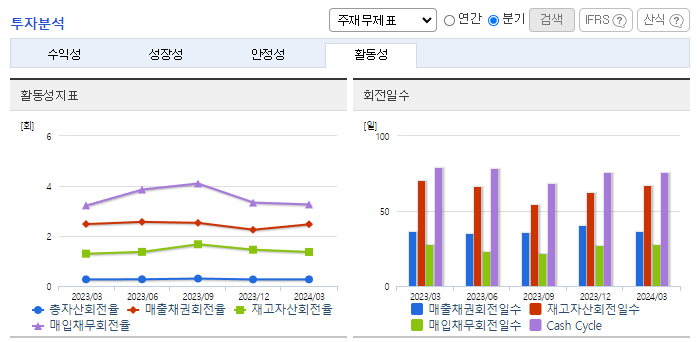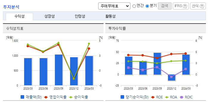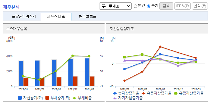 -2024년 3월 전년동기 대비 연결기준 매출액은 7.6% 증가, 영업이익은 3.2% 감소, 당기순이익은 10.9% 증가. 규모가 큰 국내 식품업체들의 잇단 해외 진출로 경쟁이 치열해져 장기적으로 수출 포트폴리오를 재조정해 매출 개선에 나서고 있음. 최근 리오프닝(경제활동 재개)으로 다시 외식을 하는 이들이 늘어나면서 샘표식품의 장류 외 품목의 매출 상승률 하락으로 이어지고 있음.