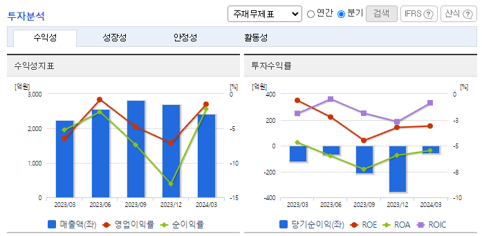 -2023년 12월 전년동기 대비 연결기준 매출액은 6.9% 감소, 영업손실은 47.6% 증가, 당기순손실은 1,933.4% 증가. 전방 산업인 IT 부문의 수요 감소로 전체적인 매출이 줄었음. 이에 따라 영업손익도 영향, 전년 대비 악화했음. 자동차 LED 시장이 오는 2027년까지 연평균 15% 성장하는 만큼 동사는 자동차 헤드램프와 실내조명, 디스플레이 솔루션 제품 경쟁력으로 지속적인 성장을 이어 나갈 예정임.