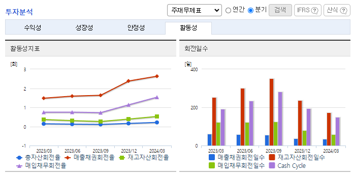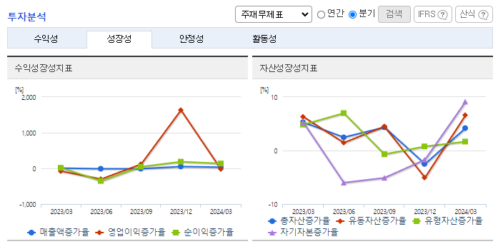 -2023년 12월 전년동기 대비 연결기준 매출액은 5.8% 증가, 영업이익은 17.9% 감소, 당기순이익 적자전환. 연결 매출액은 ESS 매출액 증가 영향으로 전년대비 427억 원 증가했으며, 연결 영업이익은 신규 사업 확대에 따른 관련 비용 증가로 감소함. 원달러 환율 하락에 따른 외화환산평가손실 증가와 차입금의 이자비용 증가의 영향으로 연결 당기순이익이 전년대비 감소함.
