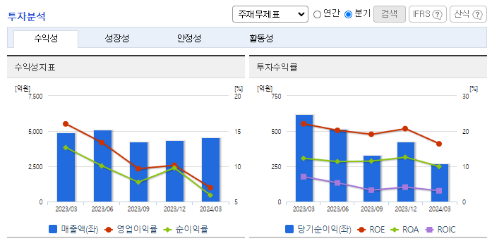 -2024년 3월 전년동기 대비 별도기준 매출액은 7% 감소, 영업이익은 59.5% 감소, 당기순이익은 56.8% 감소. 24년 3월 29일 해상풍력사업 프로젝트 대형화 대응을 위해 상환전환우선주(RCPS) 294만 주를 약 545억 원에 추가 인수하는 계약을 체결하였음. 동사는 대기, 수질오염물질은 법적 기준치 대비 30% 이내로 사내 관리기준을 설정하여 지속 관리하며, 환경경영시스템의 인증을 유지관리하고 있음.