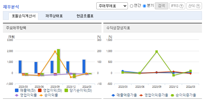-2024년 3월 전년동기 대비 연결기준 매출액은 7.6% 증가, 영업손실은 26.5% 감소, 당기순이익 흑자전환. 전자소재 사업은 독자적인 OLED 재료, 퀀텀닷(QD) 소재 및 기능성 신소재를 지속적으로 개발하고 있으며, 향후 ICT 중심의 고부가 제품군 위주 포트폴리오 강화 예정임. 북미 시장 진출 진행 중이며, 캐나다 퀘벡 그헝비(Granby) 지역에 연 1.86만 톤 생산 가능한 부지를 확보하여 2024년 하반기 양산을 목표함
