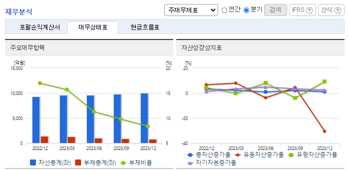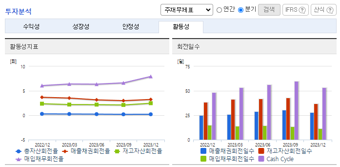 -2023년 12월 전년동기 대비 연결기준 매출액은 22.6% 감소, 영업이익은 35.5% 감소, 당기순이익은 19.9% 감소. 세계경제는 COVID-19의 장기화, 미중갈등, 전쟁 및 글로벌 경기 침체 등으로 불확실성이 확대되었으며 어려운 경영 여건이 지속됨. 최근 경기침체와 전기차 수요의 감소로 동사의 주요 전방산업인 2차 전지 산업의 성장이 다소 둔화된 모습을 보이고 있음.