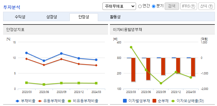 -2024년 3월 전년동기 대비 연결기준 매출액은 0% 증가, 영업이익은 41.3% 감소, 당기순이익은 47.7% 감소. 매출액은 증가하지 않았지만, 매출원가와 판관비가 3.7%, 6.9% 증가하면서 영업이익에 악영향을 줌. 스마트폰 케이스뿐만 아니라 변화하는 시장에 맞춰 제품 포트폴리오를 확대하고 있으며, 무선이어폰 케이스, 웨어러블 액세서리 및 차세대 충전기 제품 등을 통해 시장 변화에 끊임없이 대응하고 있음.