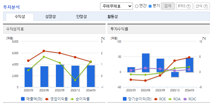 -2024년 3월 전년동기 대비 연결기준 매출액은 9.3% 증가, 영업이익은 1.7% 증가, 당기순이익은 187.5% 증가. 건강과 환경문제, 동물 복지 등의 이유로 선택적 채식을 하는 소비자들이 늘어나면서 대체식품 시장규모의 확대로 인한 매출 증대를 보여주고 있음. 푸드테크 분야도 각광을 받으면서 대체식품, 요리로봇, 물류 플랫폼이 빠르게 성장하고 있으며 향후에도 지속될 전망함.