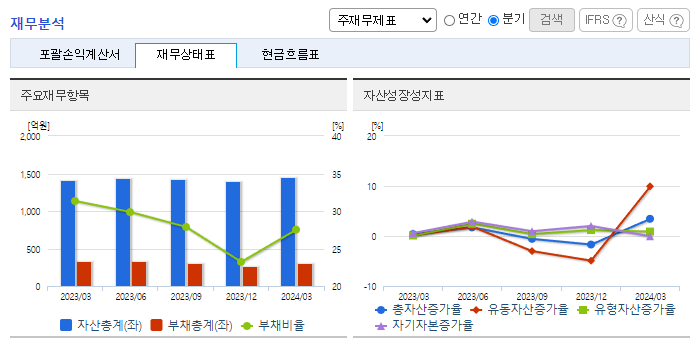 -2024년 3월 전년동기 대비 연결기준 매출액은 8.4% 감소, 영업이익은 31.3% 감소, 당기순이익은 35.2% 감소. 덴탈비타민 플랫폼을 통한 온라인 접근성과 계열사 간 연계 강화, 유튜브 채널 '재선기' 오픈 등 변화하는 소비자 구매형태에 적응하고 있음. 아시아 최대 규모의 치과전문 통합물류센터를 통한 풀필먼트 서비스 구축 및 중국상해지사와 해외사업팀을 통해 중국시장 및 세계시장 진출에 힘쓰고 있음.