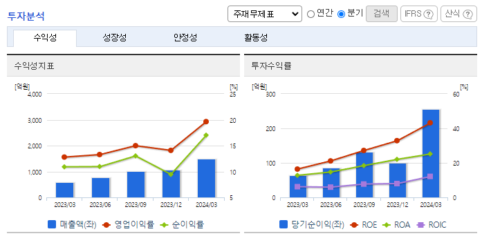 -2024년 3월 전년동기 대비 연결기준 매출액은 158.4% 증가, 영업이익은 297% 증가, 당기순이익은 303.6% 증가. 온라인 팬미팅 등 각종 행사를 통해 K-Culture 전반에 대한 판매 확장을 진행하고 있음. 2024년 1사 분기 10,000개의 SKU를 운영 중이며 전 세계 시장의 다양한 Needs를 충족하기 위한 다양한 포트폴리오 준비는 동사 비즈니스의 핵심임.