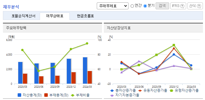 -2024년 3월 전년동기 대비 연결기준 매출액은 230.2% 증가, 영업이익 흑자전환, 당기순이익 흑자전환. 전년 동기 대비 자동차 System 부문에서의 매출이 크게 확대되었으며, 이로 인해 전반적인 매출액 상승을 견인하였음. 반도체 패키지 제조 장비로 사업영역을 확대하고 있으며, OLED, 스트레쳐블(Stretchable) 디스플레이 등 차세대 디스플레이 제조 공정에 대응하기 위한 장비도 지속적으로 개발하고 있음.
