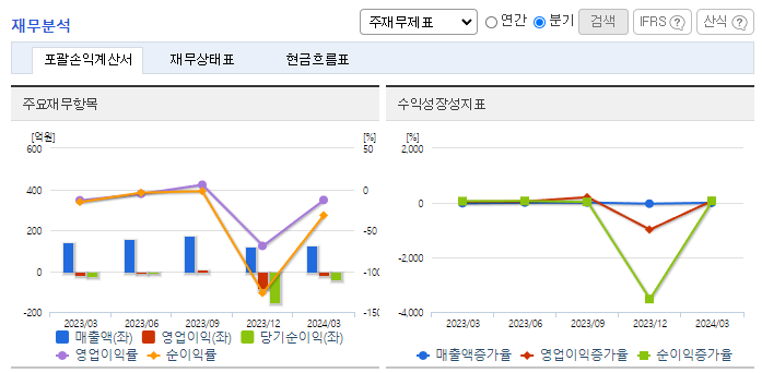 -2024년 3월 전년동기 대비 연결기준 매출액은 9.9% 감소, 영업손실은 12.4% 감소, 당기순손실은 101.7% 증가. 동사 및 계열회사의 사업 부진으로 매출이 감소하였으며, 중국 피투자회사의 영업 부진으로 지분법 손실 또한 증가함. 계열사인 트리노테크놀로지(전력반도체 전문회사)가 부산시와 4,500평 규모의 부지 매입을 체결하였으며, 부산지역 내에 파워반도체 생산시설을 건립할 예정임.