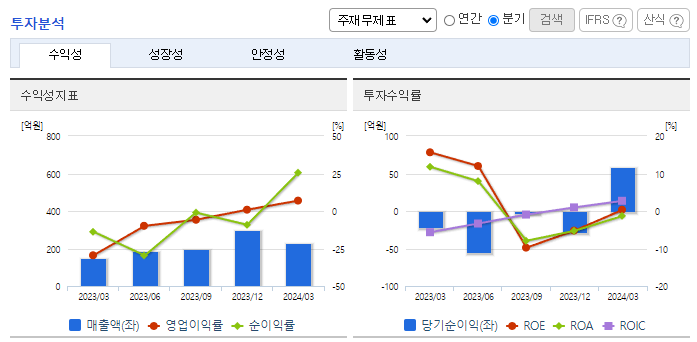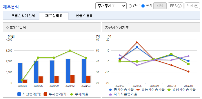 -2024년 3월 전년동기 대비 연결기준 매출액은 72.4% 증가, 영업이익 흑자전환, 당기순이익 흑자전환. 비에이에너지를 연결기업에 추가하며 배터리 안전관리 사업에 진출함. ESS안전관리 솔루션은 사용 후 배터리의 안전한 운송, 보관 및 관리 목적의 핵심 솔루션. 화장품 제조 및 판매를 주 사업으로 하는 삼성메디코스의 지분 인수 및 줄기세포 및 의약품 제조, 판매 등 정관을 변경함에 따라 사업이 다각화됨.