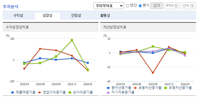 -2023년 12월 전년동기 대비 연결기준 매출액은 4.9% 증가, 영업이익은 2.1% 감소, 당기순이익은 152.8% 증가. 당기순이익 증가 원인은 당기 중 일시적으로 발생한 금융상품 평가손익 때문임. 주 사업인 V3 제품군을 비롯해 보안 서비스 사업과 컨설팅까지 동사 제품 매출은 다양한 사업 분야에서 고르게 성장했고 동사 제품의 비중 확대를 통해 전체 매출액이 증가하고 수익성이 개선됨.