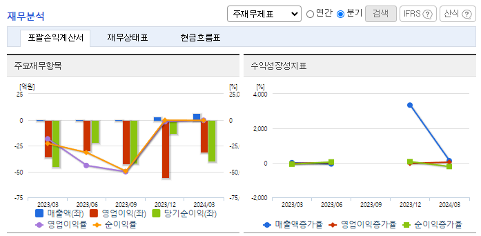 -주요 매출 유형은 건강기능식품 ODM 및 펫케어 상품 판매와 시약판매 매출로 구분됨. 2023년 11월 신규로 진출한 건강기능식품 ODM 및 펫케어상품 매출에 따라 매출이 발생하였음. 영업손실의 주요 사유는 연구개발 및 임상비용 등이 있음. 산화 스트레스 조절 신약 파이프라인 8종 개발, 면역항암제 파이프라인 개발 및 난치성 항암제 파이프라인 3종을 개발하고 있음.