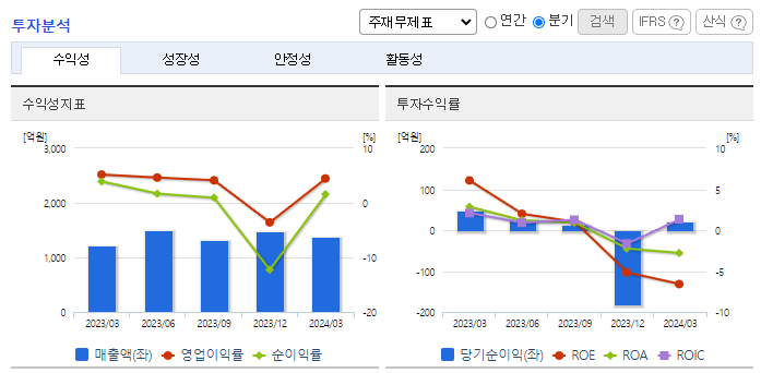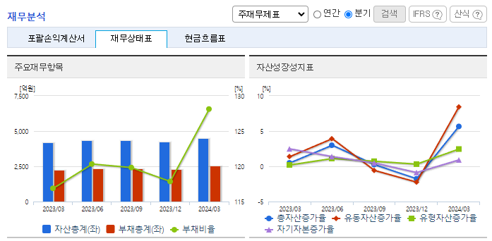 -2024년 3월 전년동기 대비 연결기준 매출액은 12.4% 증가, 영업이익은 3.1% 감소, 당기순이익은 65.8% 감소. 샌드위치패널 시장은 해외 시장에서의 매출 확대가 예상됨. 동사는 베트남, 네팔 등 성장이 기대되는 시장에 법인을 설립 또는 합작투자의 방식으로 진출하였음. 단열 두께와 내화성 관련 규제가 강화되면서 단열 성능이 뛰어난 그라스울, 우레탄 패널에 대한 수요가 증가하였고, 생산능력을 강화하여 매출 증대를 꾀함.